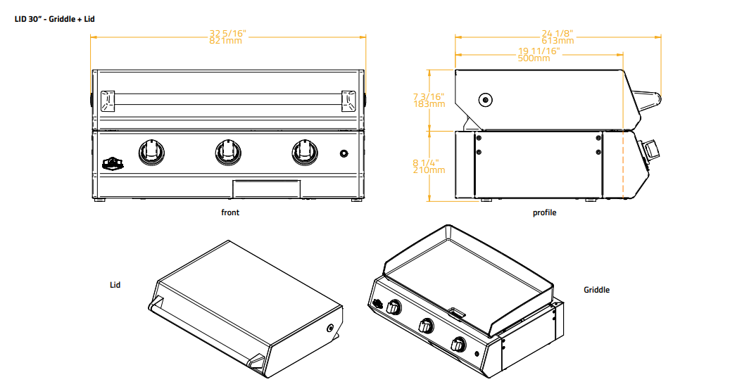 Luxusný plynový plancha gril s troma horákmi. Perfektná kombinácia šasi z nehrdzavejúcej ocele 304 a 8 mm čiernej smaltovanej vysokokvalitnej liatinovej dosky. Horáky z nehrdzavejúcej ocele. Bezpečnostný termočlánok.