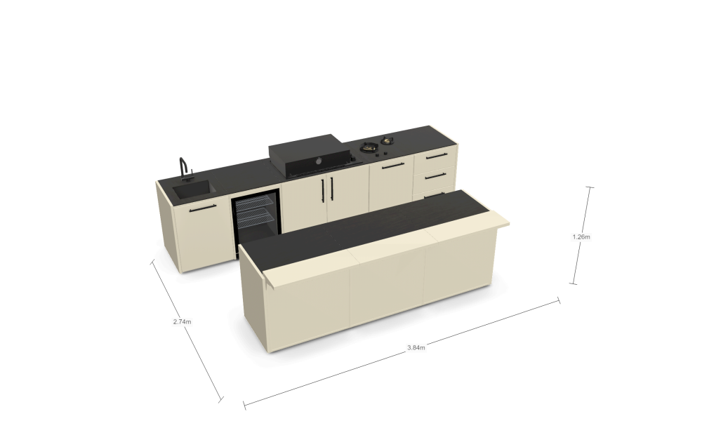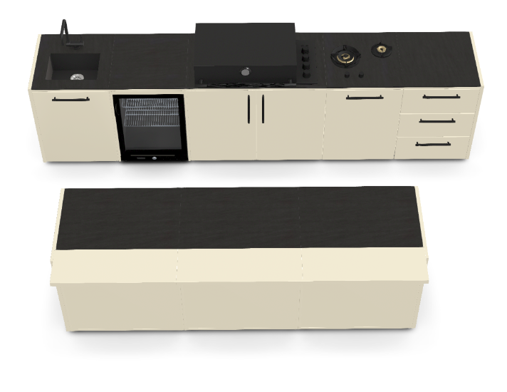 - BRABURA MODULA™ Záhradná kuchyňa s vnoreným vstavaným grilom BOX-Q 3,84m
