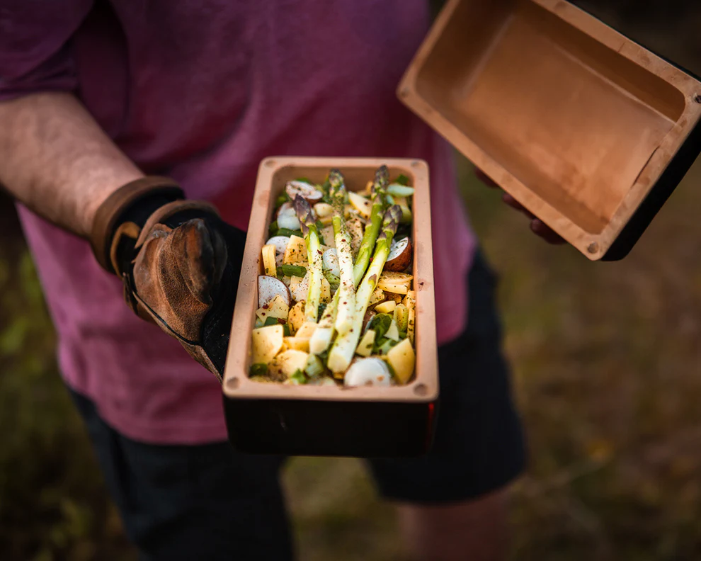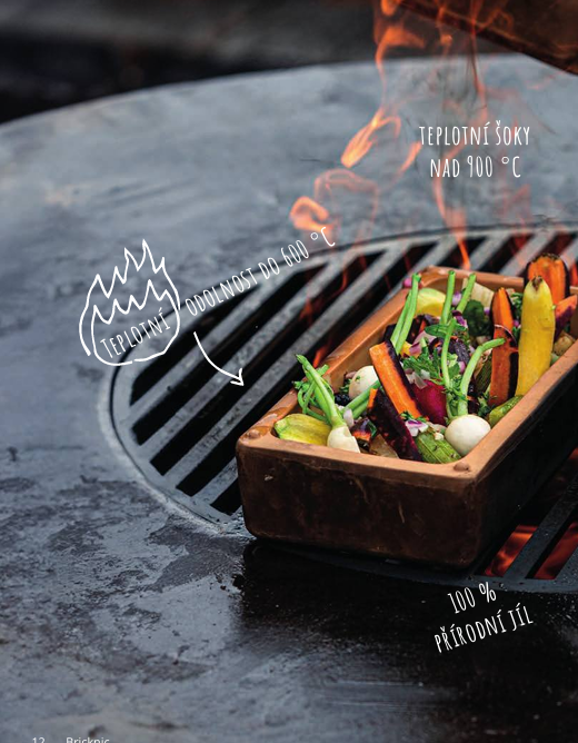 Univerzálny, ľahko použiteľný kuchynský (grilovací) nástroj. Stačí nakrájať si obľúbené ingrediencie, vložiť ich do TEHLY a umiestniť na akýkoľvek zdroj tepla. Chutné jedlo je hotové za menej ako 30 minút /živánska pri 230°C 50 minút/.