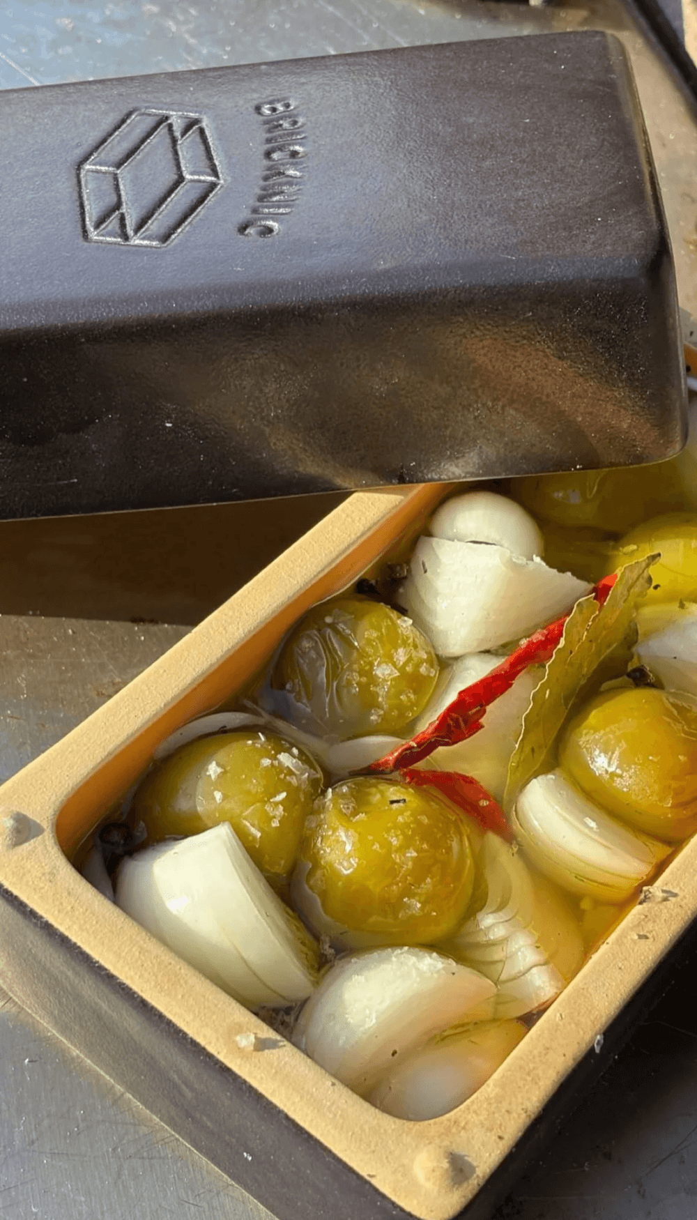 Vyrobené z prírodnej tepelne odolnej hliny. Zachováva živiny, vitamíny a čisté chute. Pórovitosť hliny prirodzene zadržiava vlhkosť, takže pokrmy ostávajú krehké a šťavnaté. Bricknic sú ideálne pre pomaly varené pokrmy, ako sú dušené jedlá a nákypy, ale sú dostatočne univerzálne na pečenie, zapekanie a dokonca aj vyprážanie.