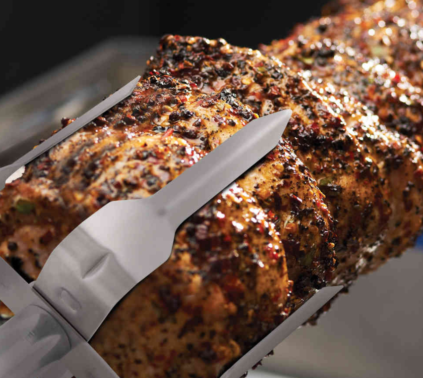A práve veľká vidlica k ražňu Broil King vám pomôže sa vyhnúť takýmto situáciám. Umožňujú väčšie držanie - veľmi ľahko udrží pečienku alebo hydinu. Hodí sa k tyčiam 3/8-IN a 1/2-IN.