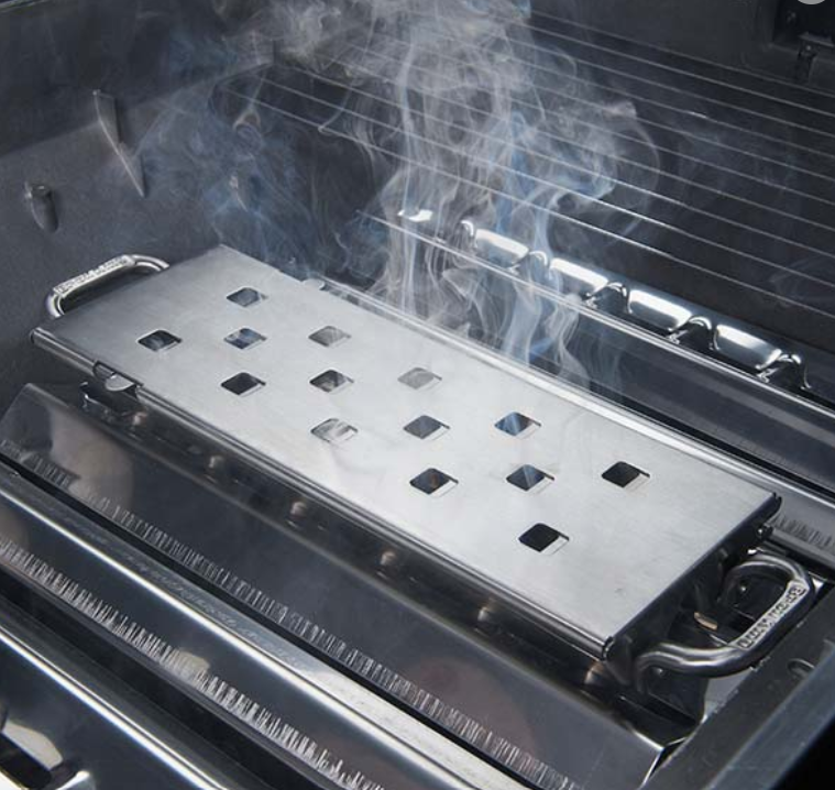 Po vložení údenárskej štiepky do boxu, ho môžete jednoducho položit na kryty horákov Flav-R-Wave (spodná časť boxu je tvarovaná presne na tento druh horáka) alebo akékoľvek iné kryty horákov.