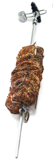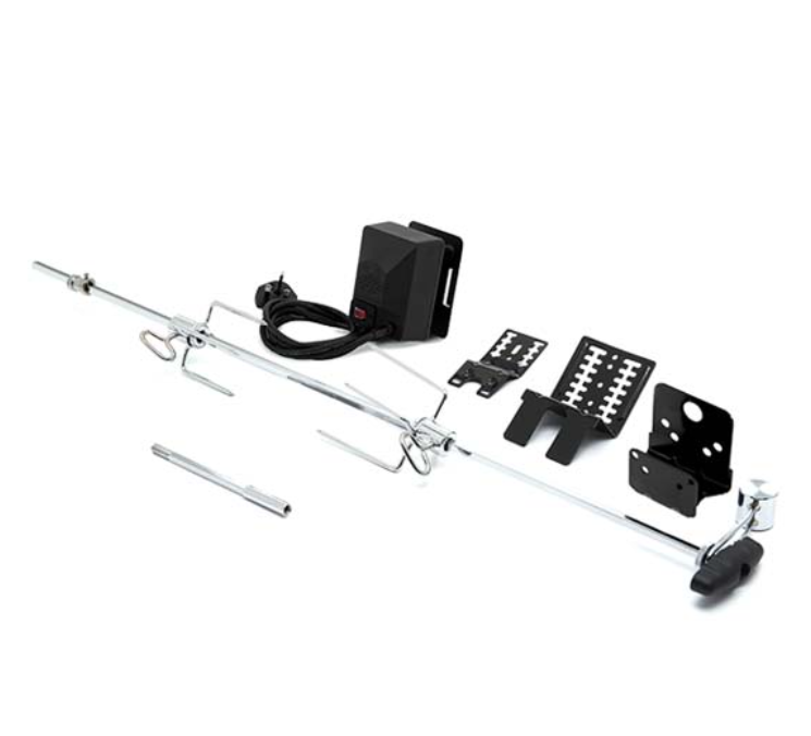 Meter dlhá univerzálna sada ražňa s motorom a robustnou vidlicou pre uchytenie mäsa umožní rozšíriť spôsoby grilovania na vašom grile.