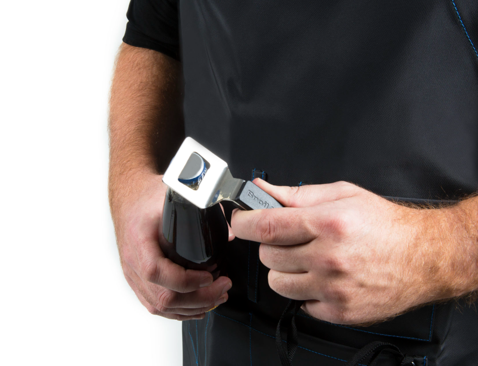 Milovníci piva určite ocenia otvárač piva, ktorý je súčasťou zástery. Univerzálna veľkosť