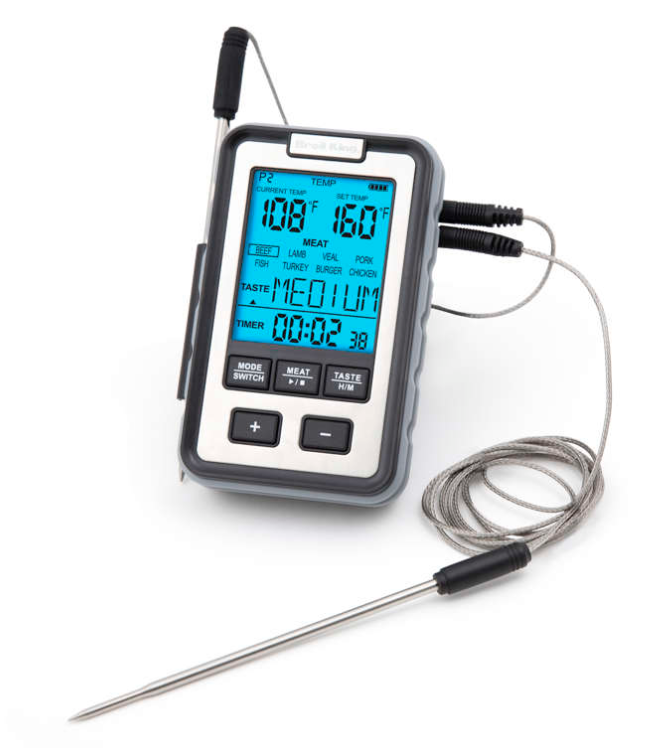 Dvoj-sondový teplomer Broil King so stojanom je skvelým pomocníkom pri grilovaní či údení. Vďaka dvom oddeleným sondám môžete veľmi pohodlne sledovať teplotu dvoch samostatne pripravovaných pokrmov zároveň.