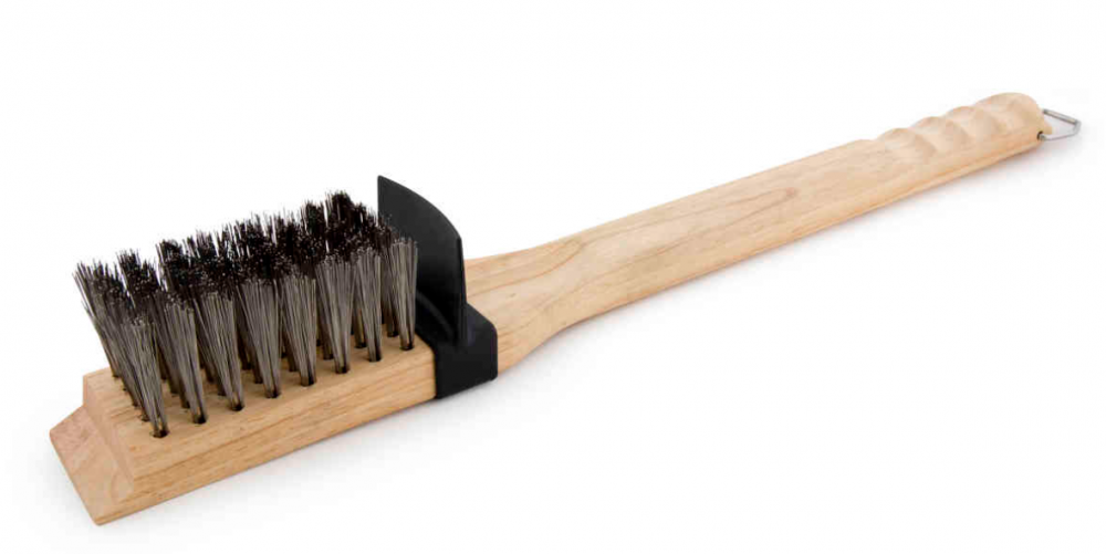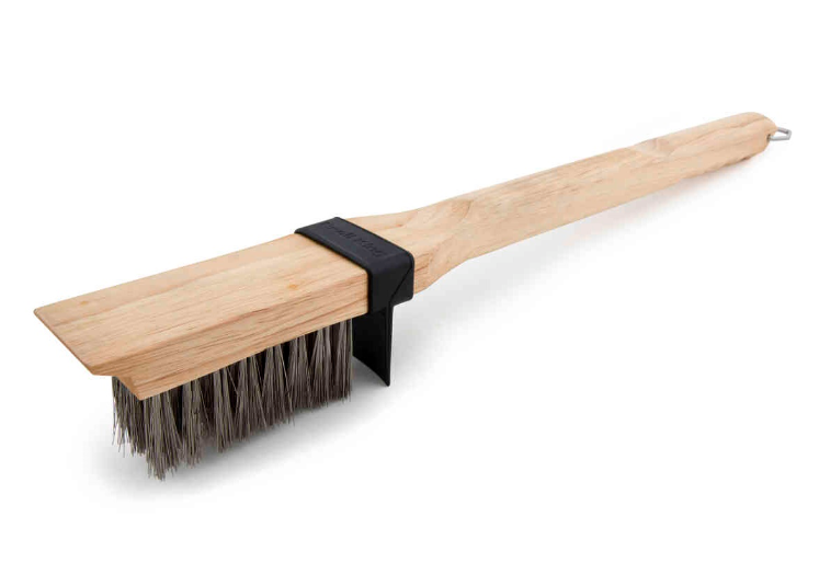 Robustná, drevená Broil King čistiaca kefa je navrhnutá tak, aby Vám pomohla očistiť zapečené časti pokrmov a tuku z grilovacích roštov. Jeho extra dlhé prírodné štetiny z palmových vlákien prenikajú hlbšie medzi grilovacej mriežky. Kefa je vybavená aj patentovanou gumovou zábranou proti vašemu zašpineniu a integrovanou drevenou škrabkou.