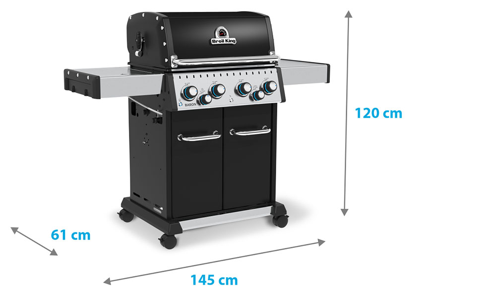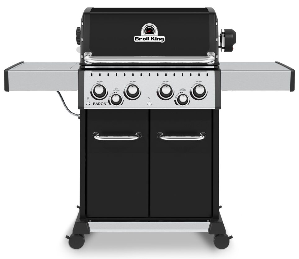 Broil King - Baron 490 v základnej výbave disponuje štyrmi hlavnými horáky, bočným varičom a elektrickým ražňom s prídavným zadným horákom pre ražnenie.