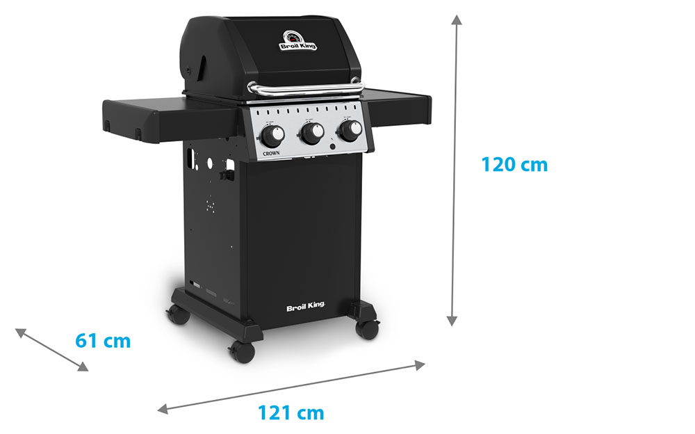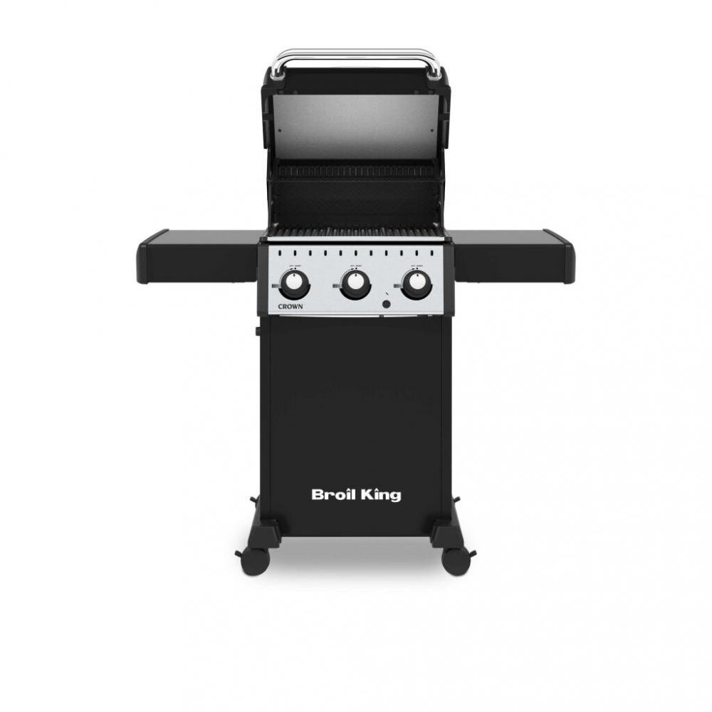 Broil King - Crown 310 v základnej výbave disponuje troma výkonnými hlavnými horákmi. Tento gril ponúka silu a výkon s radom jedinečných konštrukčných riešení ako je dvojité veko, obojstranné grilovacie liatinové rošty (ostré hrany roštu sú ideálne na prípravu steakov, otočením získate rošt so žliabkom, ktorý sa skvele hodí na grilovanie kuracieho mäsa, zeleniny a ďalších drobnejších potravín ), čierna posmaltovaná ohrievacia mriežka (tzv. druhé grilovacie poschodie využijete predovšetkým na ohrievanie pokrmov či nepriame grilovanie), kryty horákov Flav-R-Wave™ z nerezovej ocele či ventily s plynulou reguláciou výkonu Linear-Flow™ pre presné ovládanie teploty.