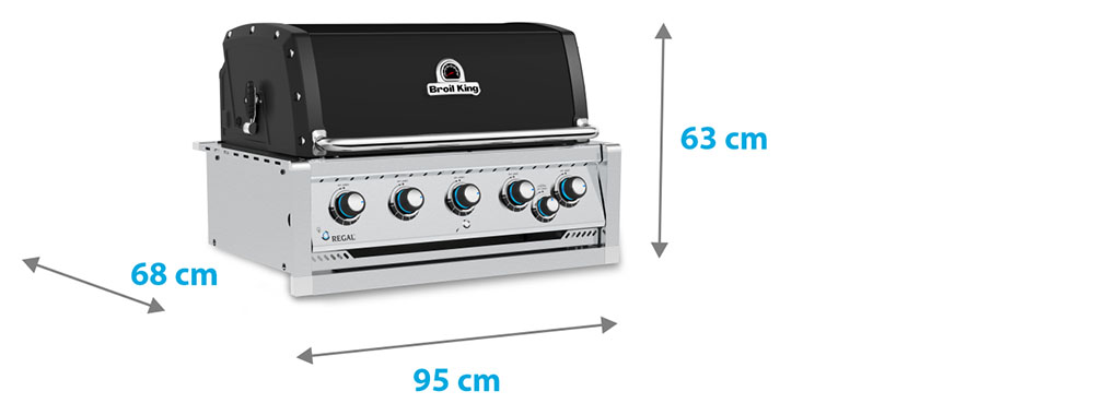 Popis produktu Broil King - Regal 450 vstavaný určený na inštaláciu. Poskytne vám pohodlie a stane sa ideálnou a nepostrádateľnou súčasťou vašej záhradnej kuchyne. Gril je vybavený piatimi pantovanými Dual-Tube horákmi ("trubica v trubici"), ktoré zaisťujú rovnomerný plameň a výkon po celej dĺžke horákov.