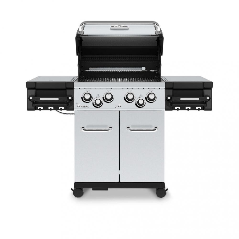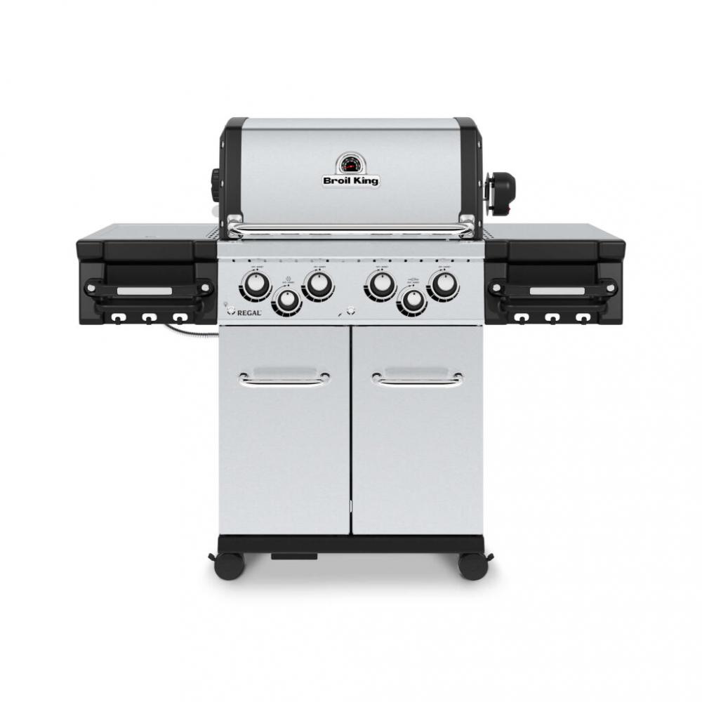 Designový štvorhorákový plynový gril Regal S 490 s celkovým výkonom 20,3 kW od kanadskej spoločnosti Broil King je doplnený o bočný varič a otočný ražeň s elektrickým motorom a prídavným zadným horákom na ražnenie.