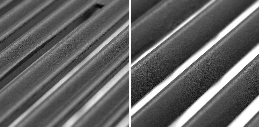 Grilovacia plocha je krytá robustnými obojstrannými roštmi z liatiny, ktoré vám umožnia prípravu niekoľkých rozličných pokrmov naraz. Patentované horáky Tube-in-tube z nerezovej ocele zaisťujú rovnomerný plameň a výkon po celej dĺžke horáka a tým aj rovnomernú distribúciu tepla po celom priestore.