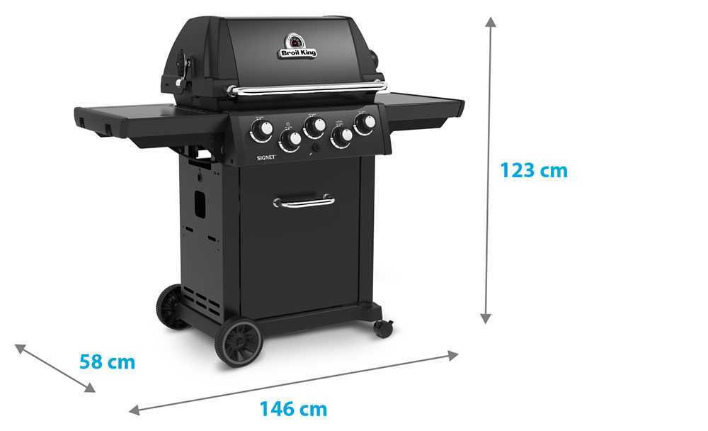 ktorý kombinuje elegantný čierny vzhľad a jednoduchú prípravu grilovaných špecialít. Tento model je tiež vybavený, ako je zvykom pri Broil King, obojstrannými liatinovým roštmi. Výkonné dvojrúrkové horáky DualTube majú celkový výkon 11,4 kW. Do grilovacieho šasi môžete umiestniť plynovú fľašu Broil King Signet 390 Shadow 10 kg.