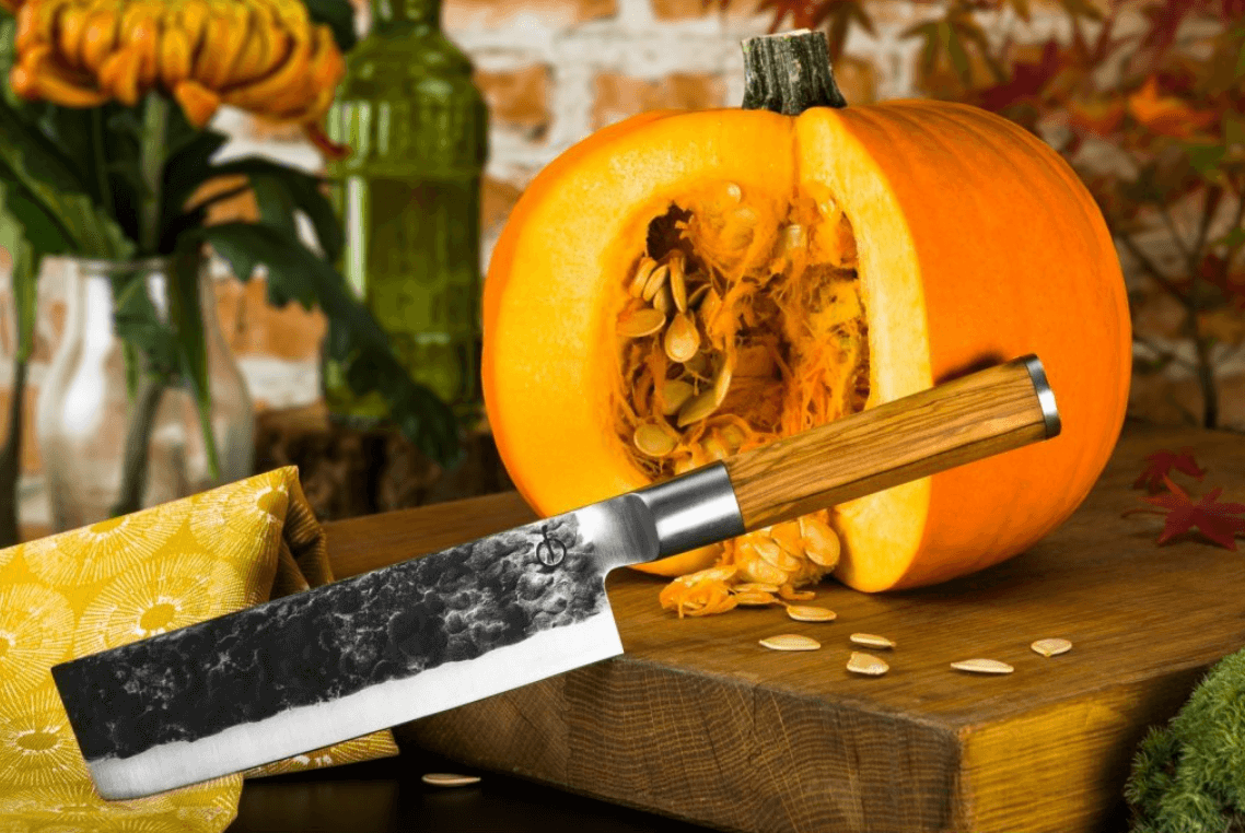 - cuketu, alebo žltú tekvicu nakrájajte na pol cm hrubé plátky. Na krájanie použite kvalitné nože na zeleninu FORGED NAKIRI: