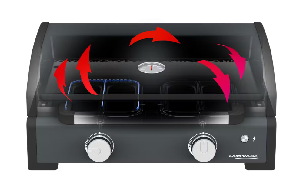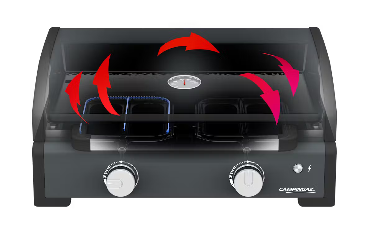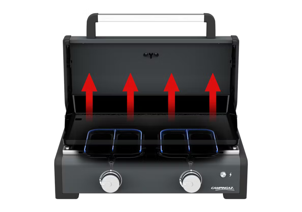 - 2x rýchlejšie predhrievanie v porovnaní s bežnými modelmi Campingaz Plancha, znižuje vašu uhlíkovú stopu a umožňuje vám začať piecť a grilovať skôr.
