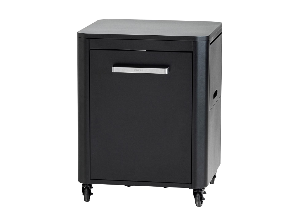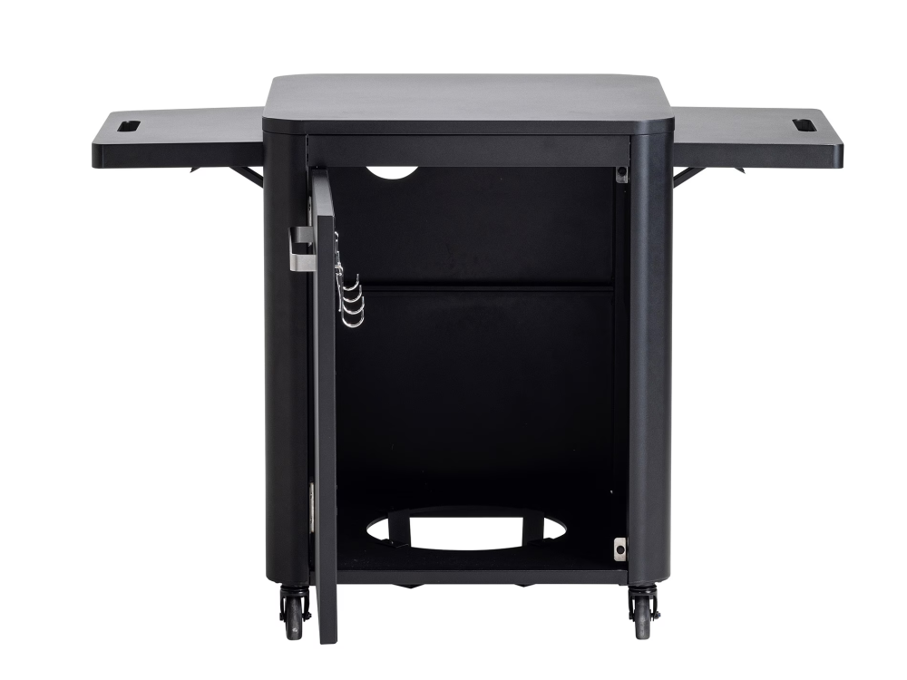 Praktický stolík na kolieskach Cozze s držiakom na plynovú fľašu je ideálnym doplnkom ku grilu Plancha 600, ale aj iným grilom a piza peciam.