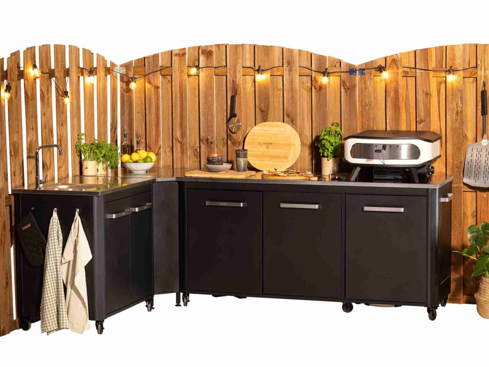 >Štýlový rohový stôl pre záhradnú kuchyňu Cozze dodá vašej vonkajšej oáze eleganciu a praktickosť.