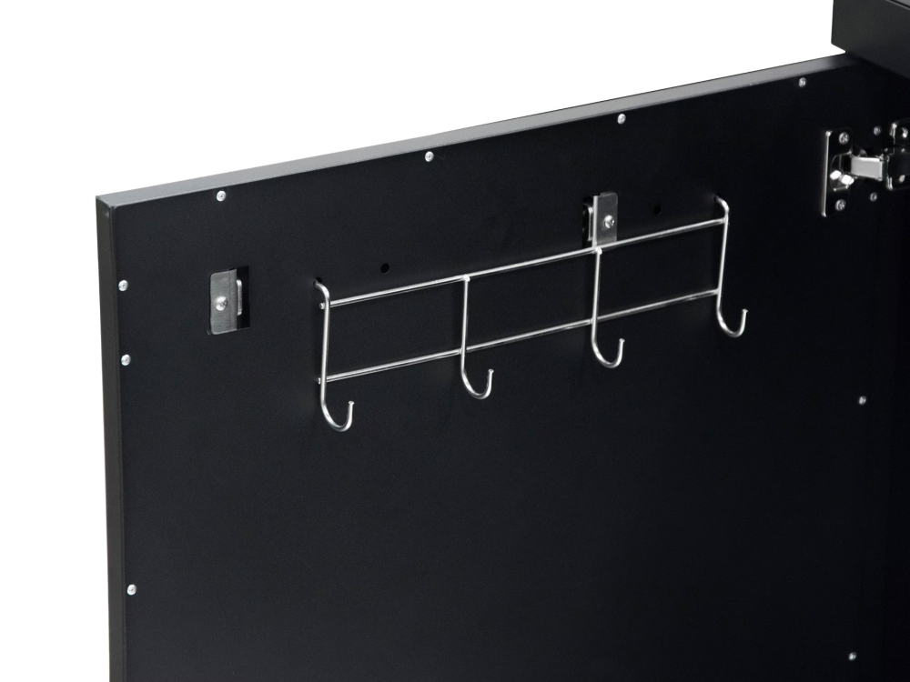 Letná grilovačka môže začať! Vytvorte si v záhradnom domčeku či priamo na terase príručnú mini verziu vašej kuchyne a grilujte ako profík. Všetko, čo potrebujete pri letnej grilovačke zmestíte do stolíka Cozze. Jeho pracovná plocha je vyrobená z nehrdzavejúcej ocele, takže bez problémov zvládne oslavu na záhrade. Zabudovaný odpadkový kôš je praktickou pomôckou, ktorú po chutnom obede určite oceníte. Tri dvierka poskytujú dostatočný priestor na to najpotrebnejšie. Háčiky a úchyty skriniek poslúžia na odkladanie grilovacieho náradia a utierok.