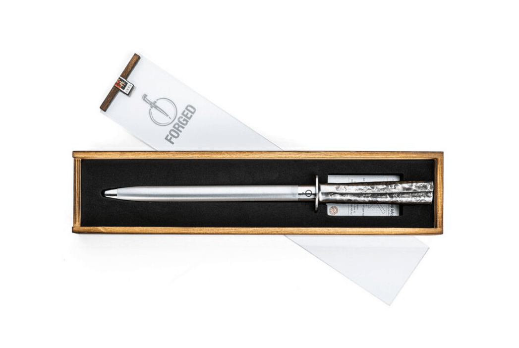 Nože je možné ošetriť pomocou ocieľky FORGED s kvalitnou diamantovou vrstvou. Pomocou ocieľky odstránite malé otrepy a hlbočeky na ostrí a nôž tým naostríte. Nejde však o nabrúsenie ako u profesionálneho brúsiča.