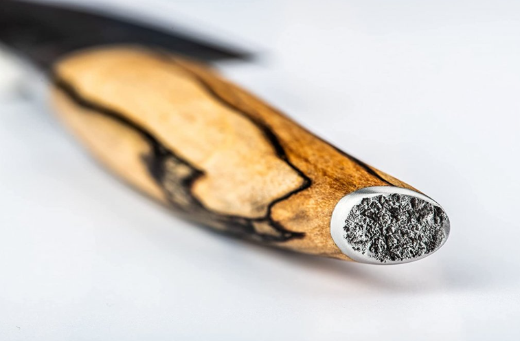 Ostrie je ručne kované v 5 vrstvách japonskej ocele VG10. Rukoväť je vyrobená z koreňového dreva, ktoré je najprv vyplnené živicou. Potom sa lisuje a následne tvaruje. Každý nôž je tak jedinečný povrchom, veľkosťou aj tvarom