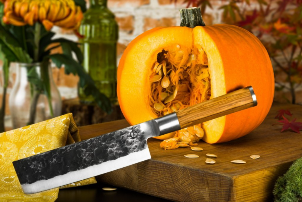 - Vyrobený ručne z japonskej ocele a olivového dreva