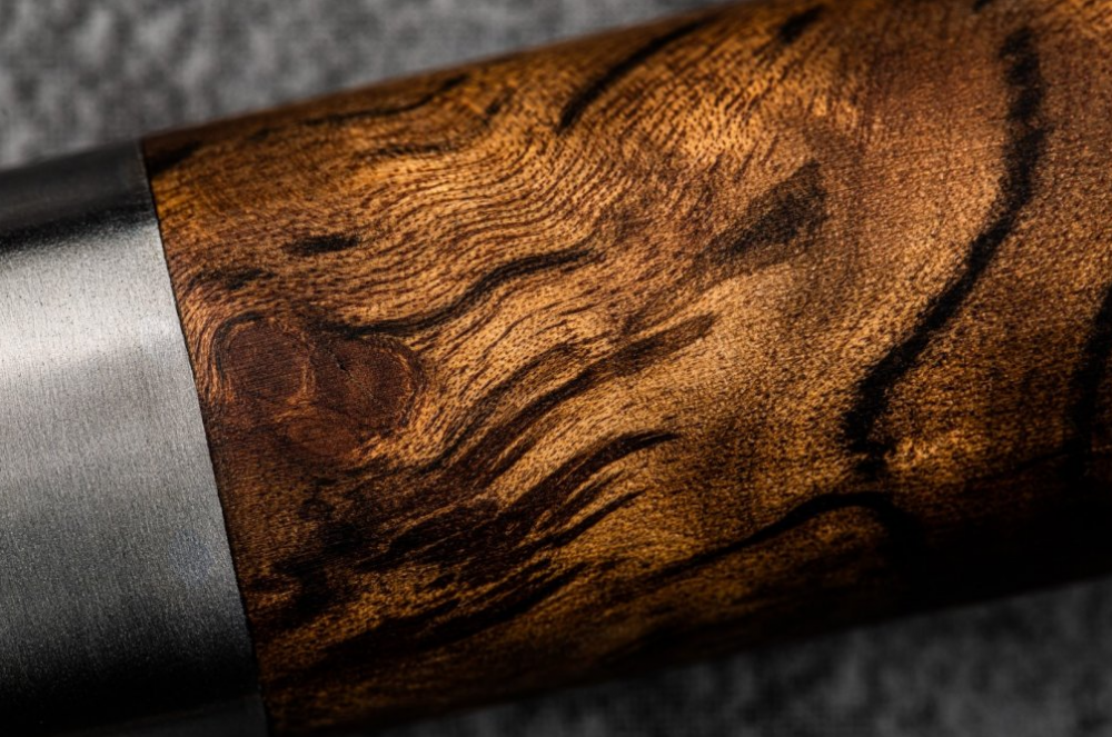 - Materiál: japonská oceľ VG10, koreňové drevo