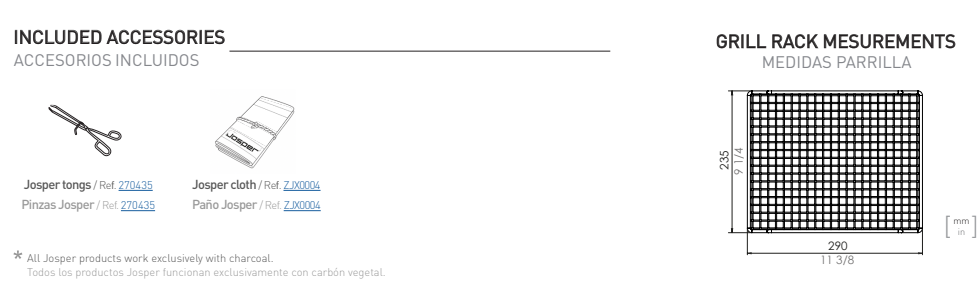 - Všetky produkty Josper fungujú výlučne na drevené uhlie.