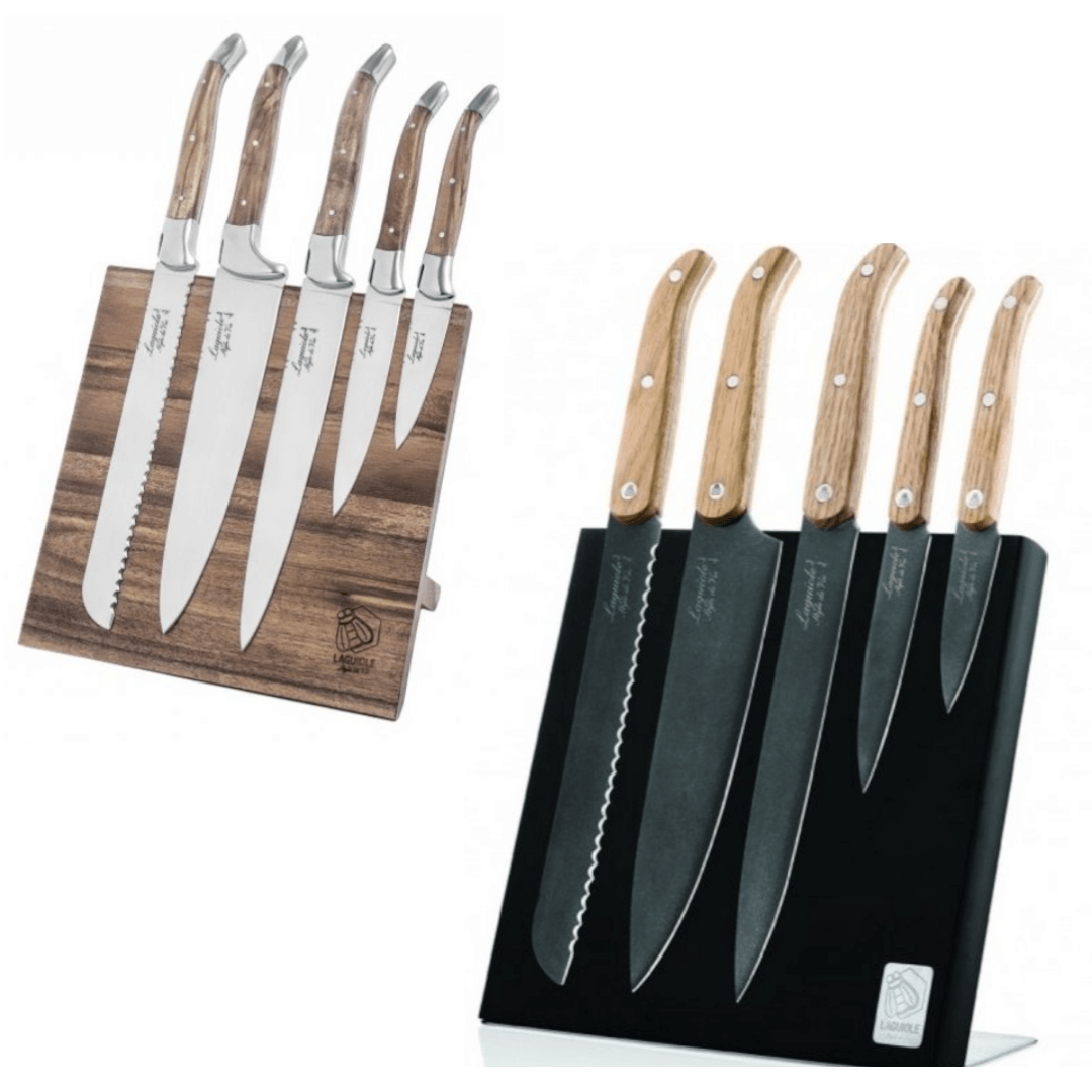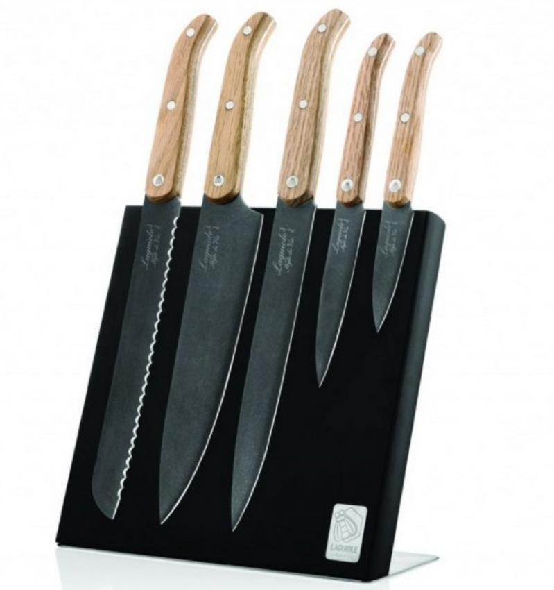LAGUIOLE Innovation - sada nožov s magnetickým stojanom - rukoväť dubová