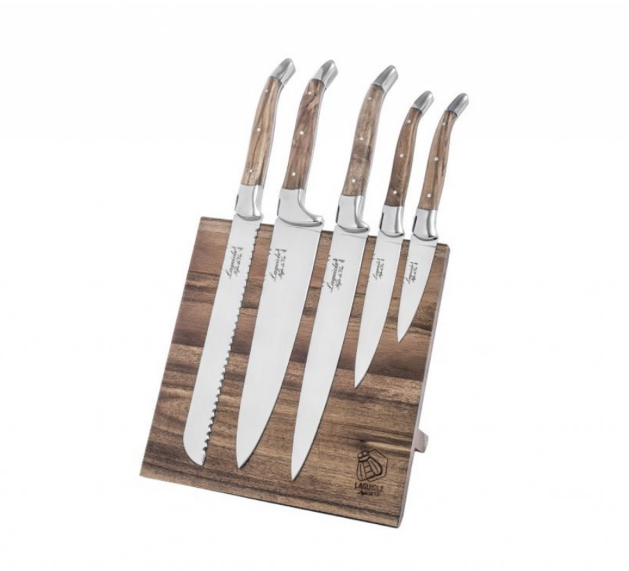 LAGUIOLE Luxury - sada nožov s magnetickým stojanom - rukoväť z olivového dreva