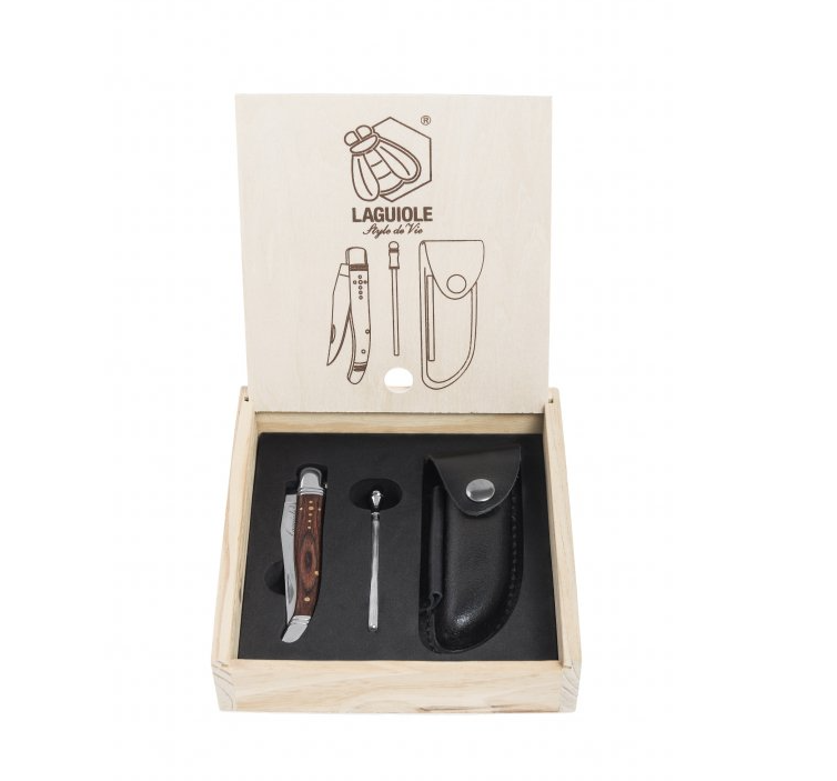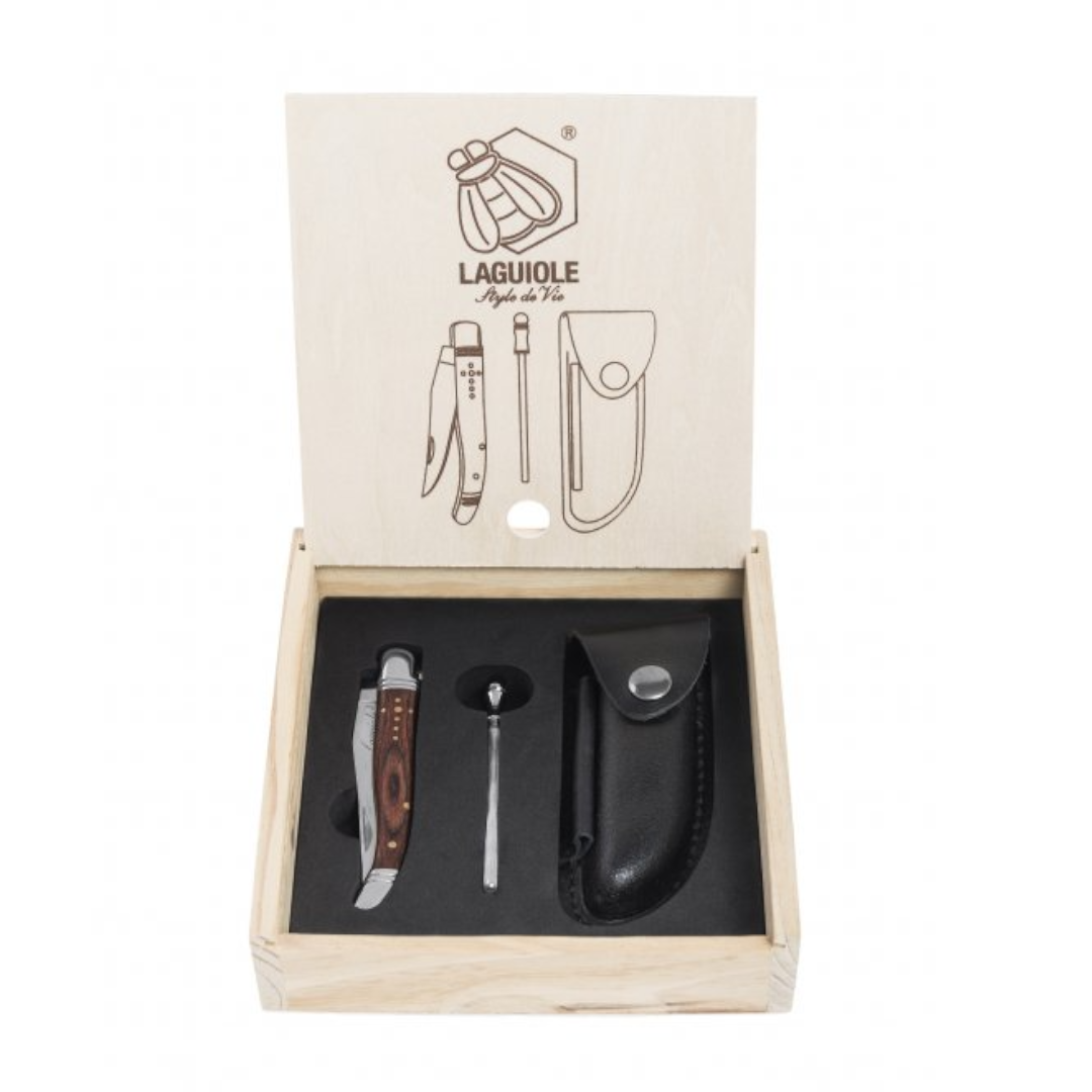 - LAGUIOLE Luxury - vreckový nôž s púzdrom a brúskom - rukoväť palisander
