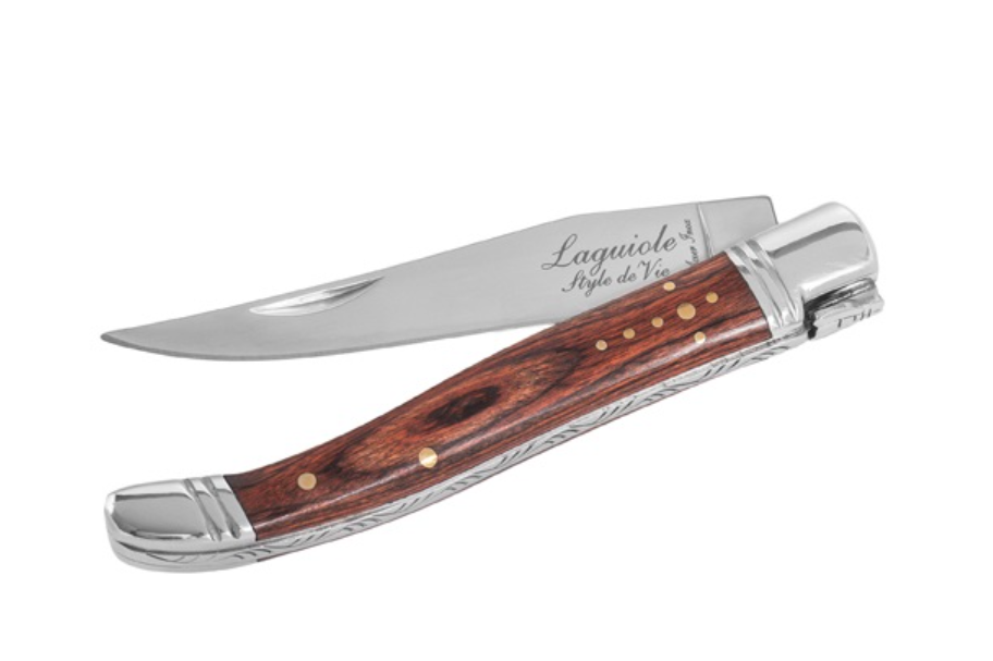 Hladká čepeľ vreckového noža je vyrobená z nehrdzavejúcej ocele a je zakončená autentickým včelím a pastierskym znakom Laguiole.Čepeľ má hrúbku 2,5 mm. Každý vreckový nôž je zabalený v luxusnej "drevenej" darčekovej krabičke. Pre Luxury rad Laguiole Style de Vie je luxusný vzhľad na prvom mieste. Krásne navrhnuté produkty sú vysokej kvality a majú vďaka použitiu nerezovej ocele a rôznych druhov dreva elegantný vzhľad.