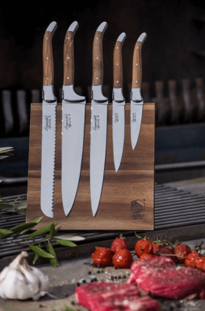 LAGUIOLE Luxury - sada nožov s magnetickým stojanom - rukoväť z olivového dreva. Pri Luxury rade Laguiole Style de Vie je luxusný vzhľad na prvom mieste. Krásne navrhnuté produkty sú vysokej kvality a majú vďaka použitiu nerezovej ocele a rôznych druhov dreva elegantný vzhľad.