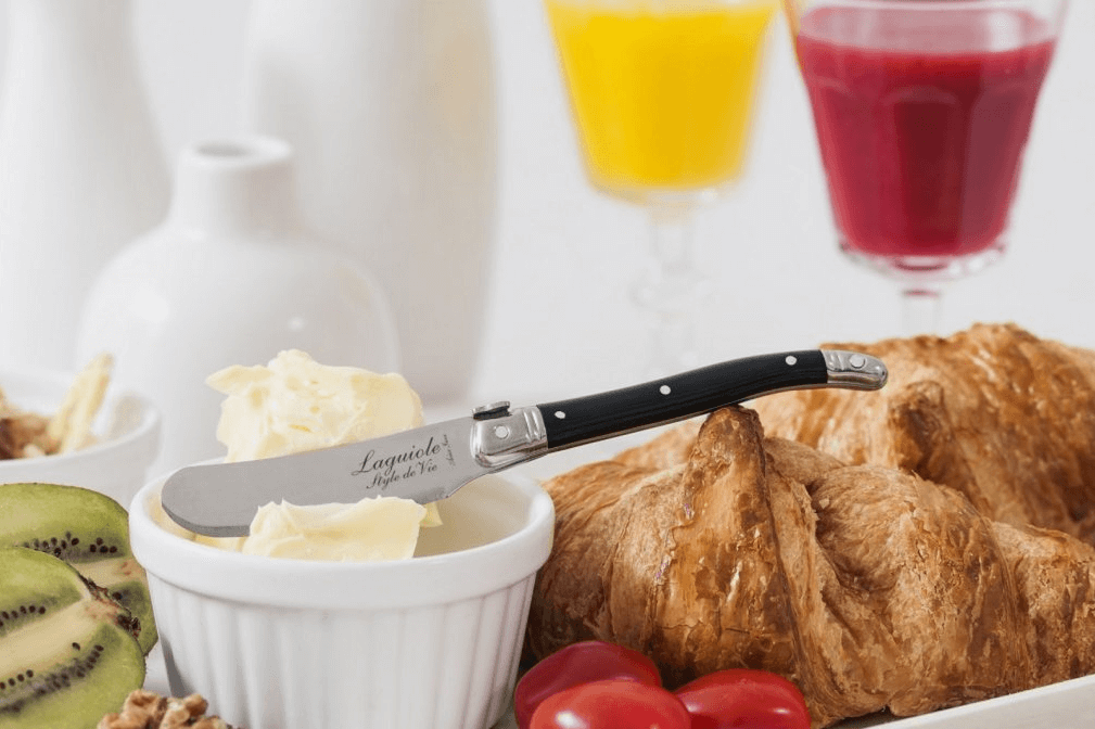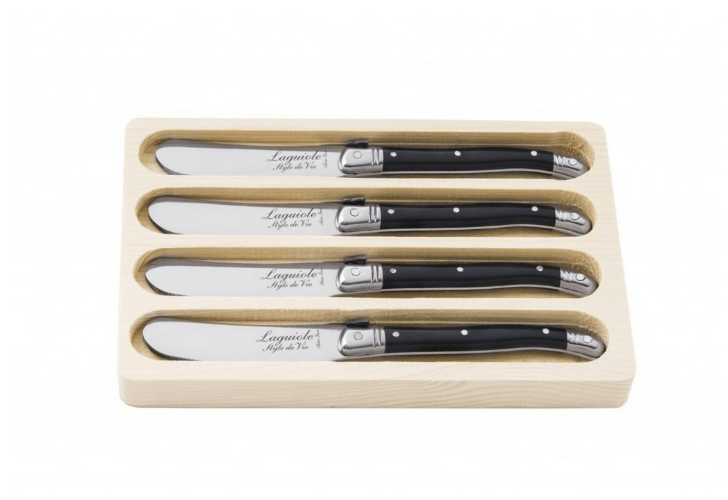 LAGUIOLE Premium - nože na maslo 4 ks, rukoväť čierna. Prémiový rad Laguiole Style de Vie sa vyznačuje klasickým dizajnom, kvalitným prevedením a spracovaním, a širokou ponukou produktov v rôznych farebných prevedení.