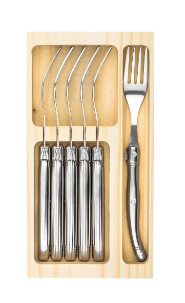 LAGUIOLE Premium - vidličky 6 ks v drevenom boxe s nerezovou rukoväťou. Prémiový rad Laguiole Style de Vie sa vyznačuje klasickým dizajnom, kvalitným prevedením a spracovaním, a širokou ponukou produktov v rôznych farebných prevedení.