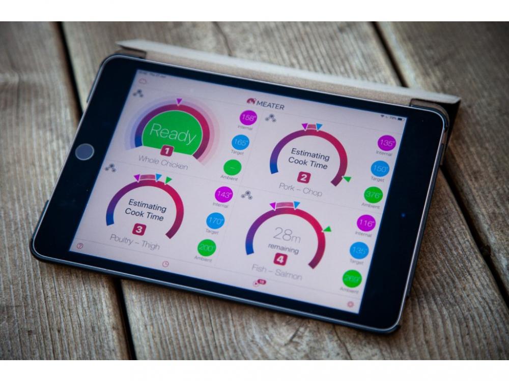 Celkom štyri sondy v balení. Po inštalácii aplikácie Meater vo vašom mobilnom zariadení sledujete teplotu nielen vo vnútri mäsa, ale aj v jej okolí.