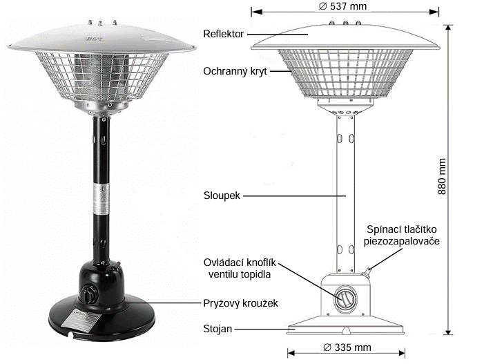 • MEVA  Stolový Terasový plynový ohrievač Etna Mini