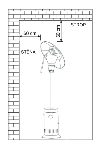 Ohrievač nie je možné použiť v interiéri. Minimálne 25% priestoru musí byť otvorený.