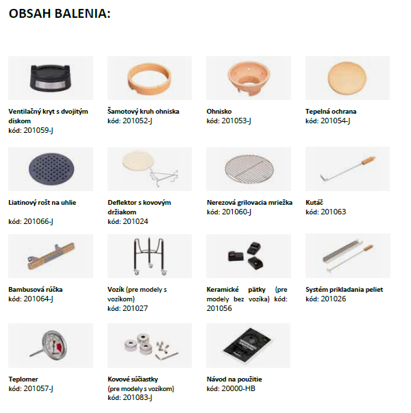 - Keramické ohnisko s liatinovým roštom (spaľovacím na uhlie)