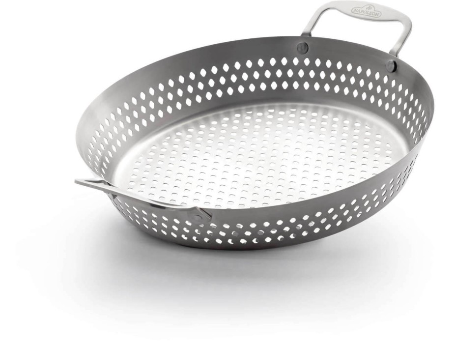 Nerezová panvica wok od spoločnosti Napoleon je ideálna na grilovanie menších dielov.