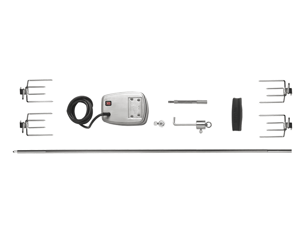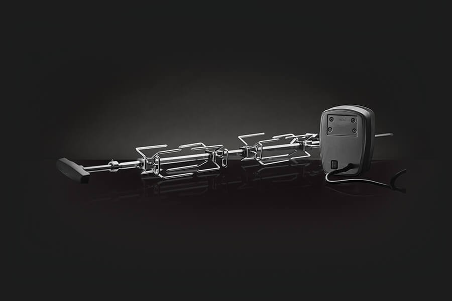 Šesťhranná tyč na ražeň je vyrobená z potravinárskej nehrdzavejúcej ocele a má predĺženie tyče, aby sa zabezpečila dostatočná dĺžka. Vysokovýkonný motor dokáže presunúť náklad až 4,5 kilogramu. Dve vidlice, každá so štyrmi hrotmi, držia všetko, čo chcete grilovať, a dajú sa ľahko utiahnuť pomocou upínacej skrutky.