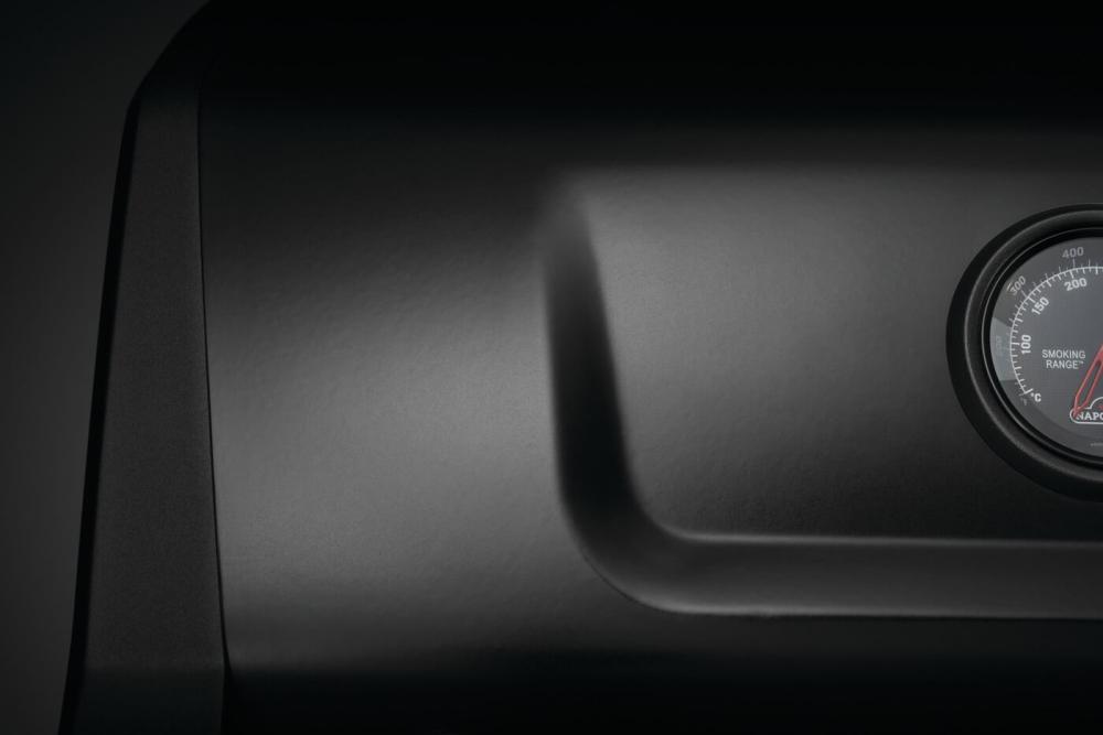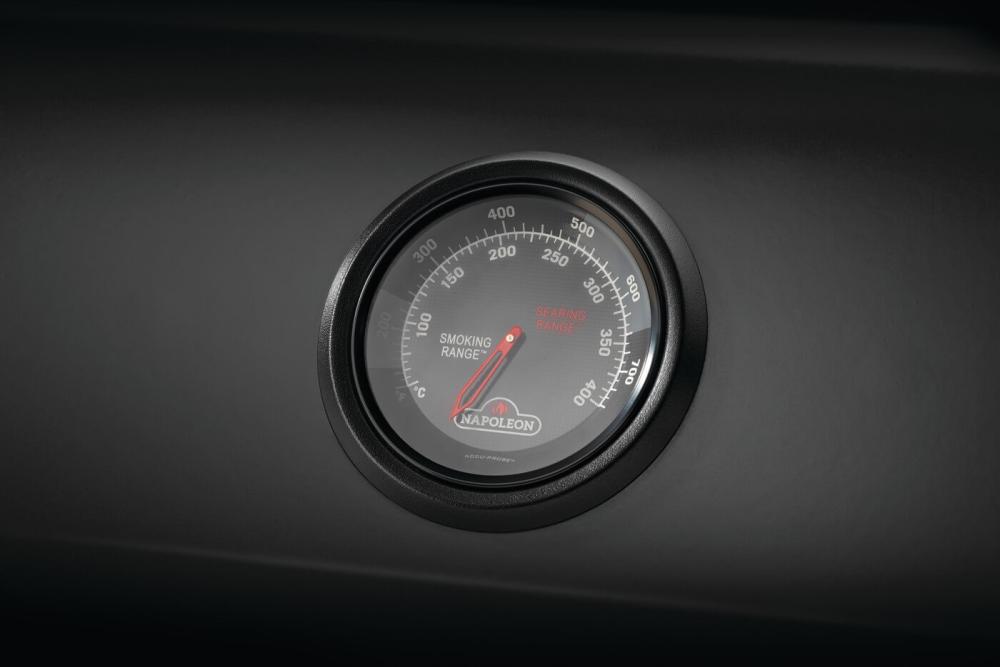 Vo veku grilu je zabudovaný teplomer, pomocou ktorého si ľahko postrážite ideálnu teplotu mňamky, ktorú práve grilujete.
