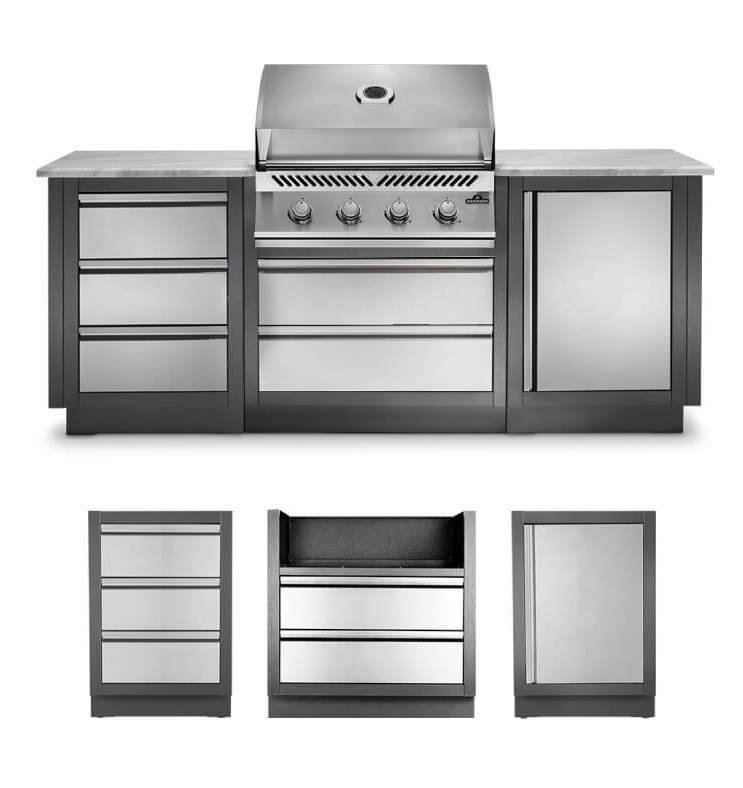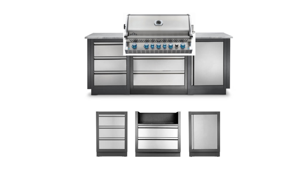 NAPOLEON OASIS™ Záhradná kuchyňa so vstavaným grilom BIPRO665 PB so svetlom a obalom grilu