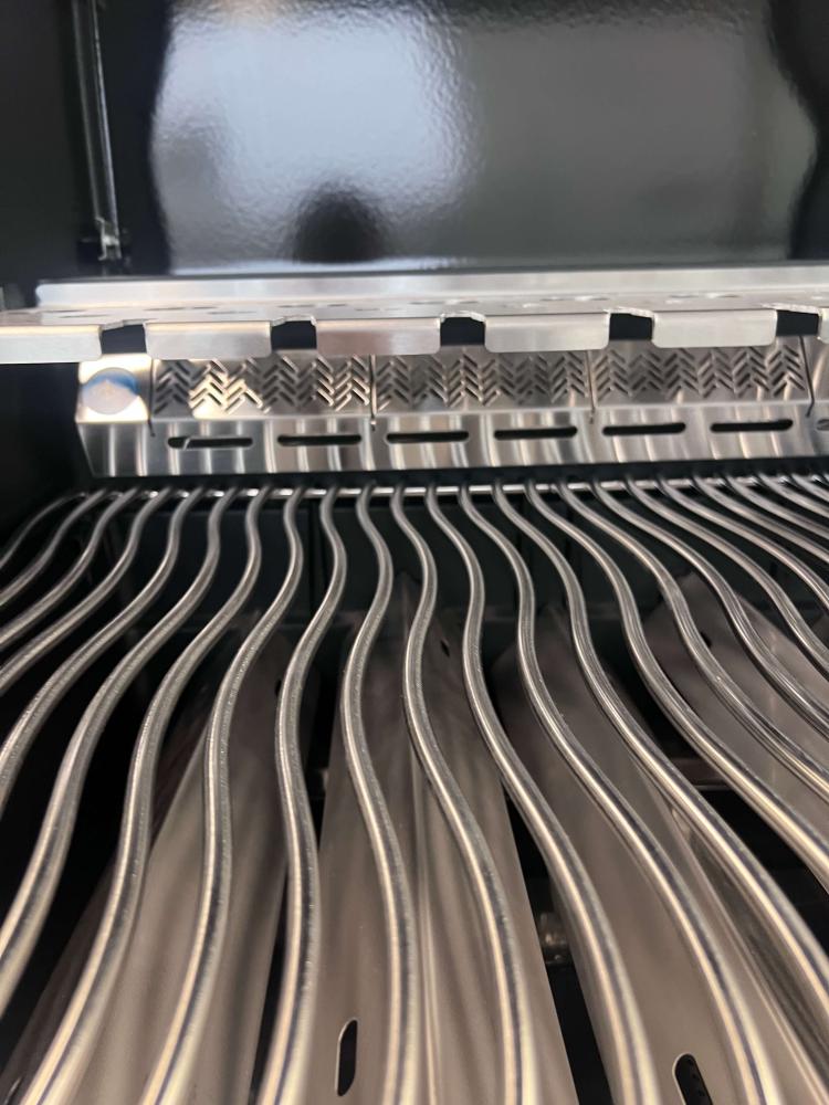 Gril má celkom 3+2 horáky. Tri hlavné, nerezové, so špeciálnymi krytmi, aby sa do ich trysiek nedostalo nič, čo tam nepatrí. Tie sú navyše vybavené systémom vzájomného zapaľovania, takže keď náhodou pri zapaľovaní nechytia všetky, zapália sa o seba navzájom. Gril ďalej disponuje zadným horákom pre ražeň a jedným bočným infračerveným (tzv. Sizzle Zone).