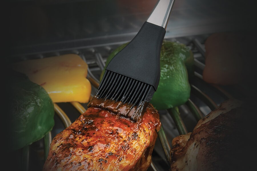 a zároveň zaisťuje rovnomerné potiahnutie grilovaného jedla olejom, maslom alebo marinádou. Jeho štetiny sú vyrobené z tepelne odolného silikónu, takže sa ľahko čistia a sú antibakteriálne. Kefu môžete bezpečne umyť v umývačke riadu a uložiť ju do zásuvky s iným kuchynským riadom alebo ju zavesiť kdekoľvek.
