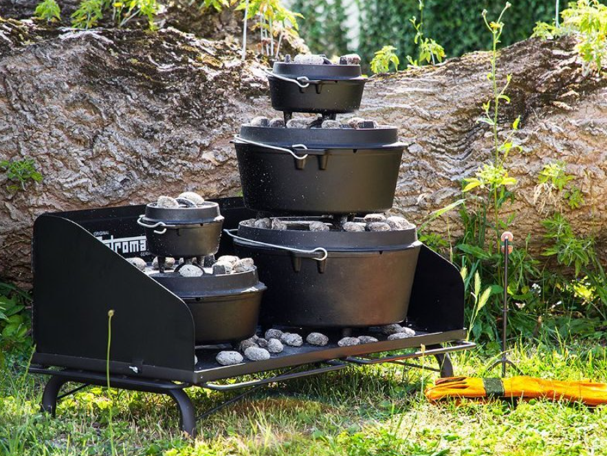 Vďaka vynikajúcim vlastnostiam liatiny a špeciálnej povrchovej štruktúre sa teplo efektívne ukladá a prenáša. Vopred upravený povrch (zahorený povrch) eliminuje potrebu počiatočného zahorovania a robustnú rúru Dutch Oven je možné použiť okamžite. Vonku sa používa na otvorenom ohni alebo s dreveným uhlím. Zvýšený okraj veka umožňuje umiestniť uhlíky alebo drevené uhlie aj priamo na holandskú rúru. Dutch Oven je ohrievaná zo všetkých strán a je vhodná napríklad aj na pečenie chleba alebo pizze.