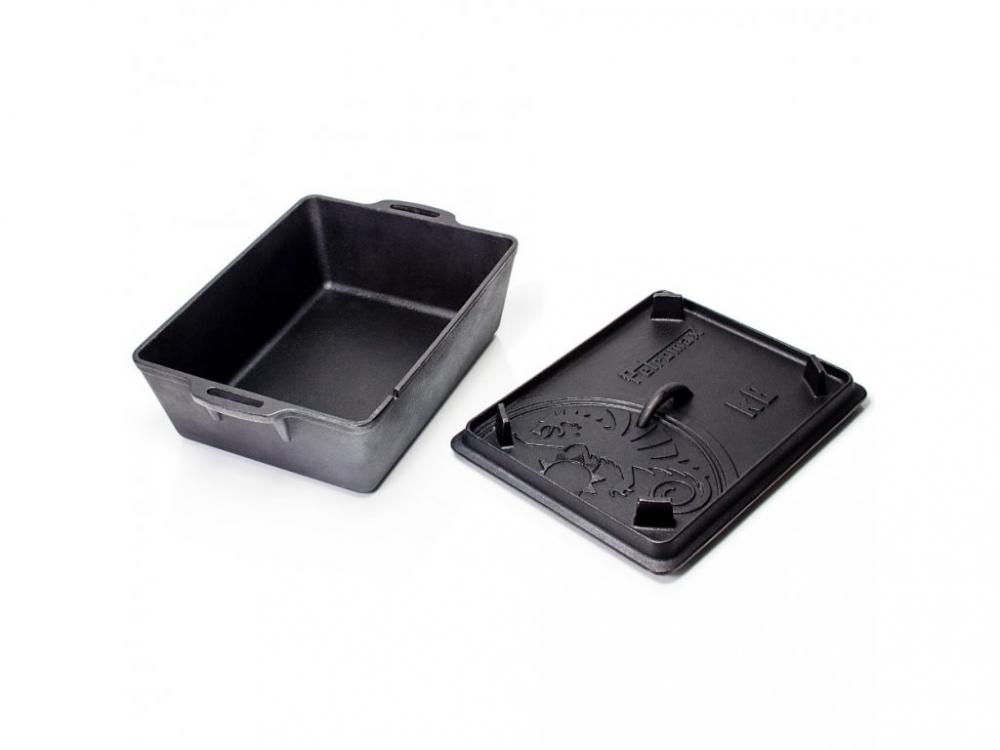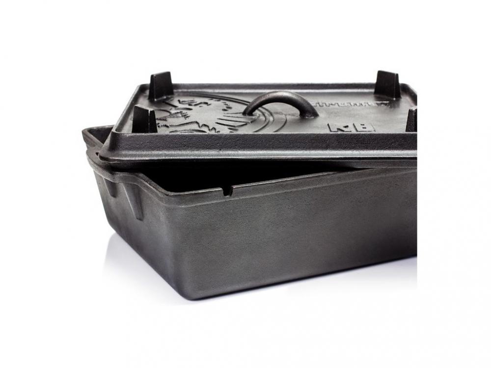 Formy na pečenie s vekom. Forma na pečenie s vekom je k dispozícii v dvoch veľkostech. Využiť ju môžete ako pekáč, zapekaciu misu či formu na chleba. Veko formy jednoducho odoberiete pomocou zdviháka na pokrievky. Väčšia forma na pečenie k8 má veko s nôžkami. Po otočení tak môžete veko použiť ako panvicu. Vďaka drážkovonému profilu je ideálna na prípravu steakov a grilovaného mäsa.