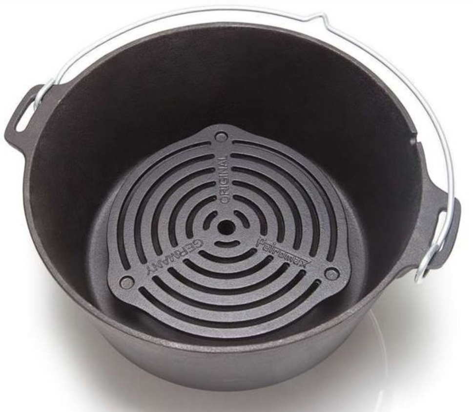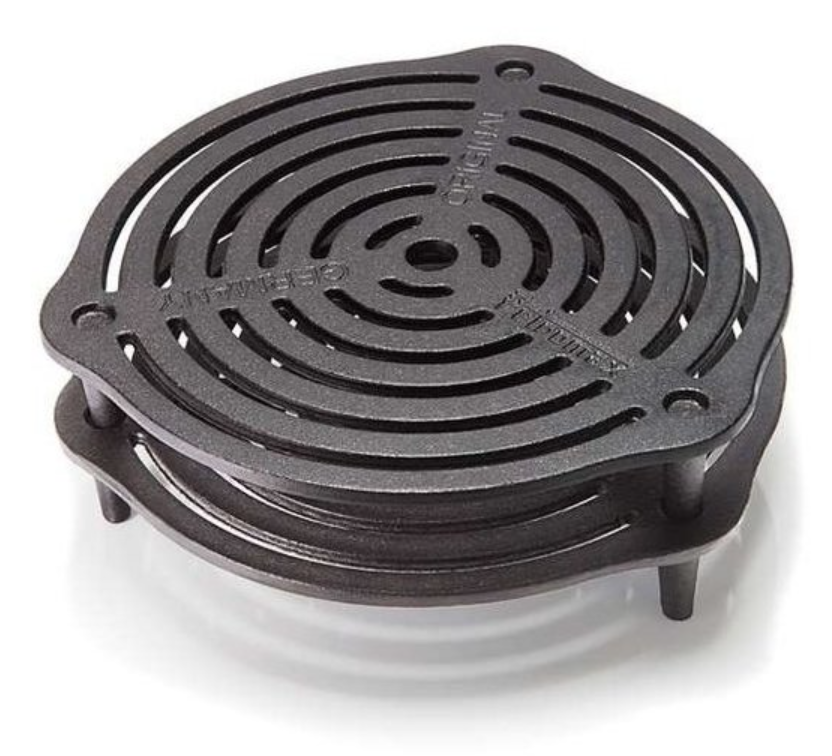 Liatinový rošt s nožičkami postavíte priamo nad žeravé uhlie a získate platňu pre liatinový hrniec. Pečené mäso alebo dusené ragú potom pripravíte veľmi ľahko bez toho, aby sa vám jedlo pripaľovalo. Vďaka nožičkám (4,8 cm) a jamkám v rošte môžete jednotlivé rošty ľahko a bezpečne stavať na seba. Spodný rošt tak môžete využiť na prípravu menších ingrediencií v panvici, zatiaľ čo na hornom rošte sa bude dusiť guláš. Pre kotly Petromax FT4,5, FT6, FT9, FT12 a FT18