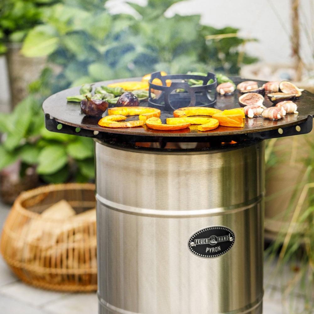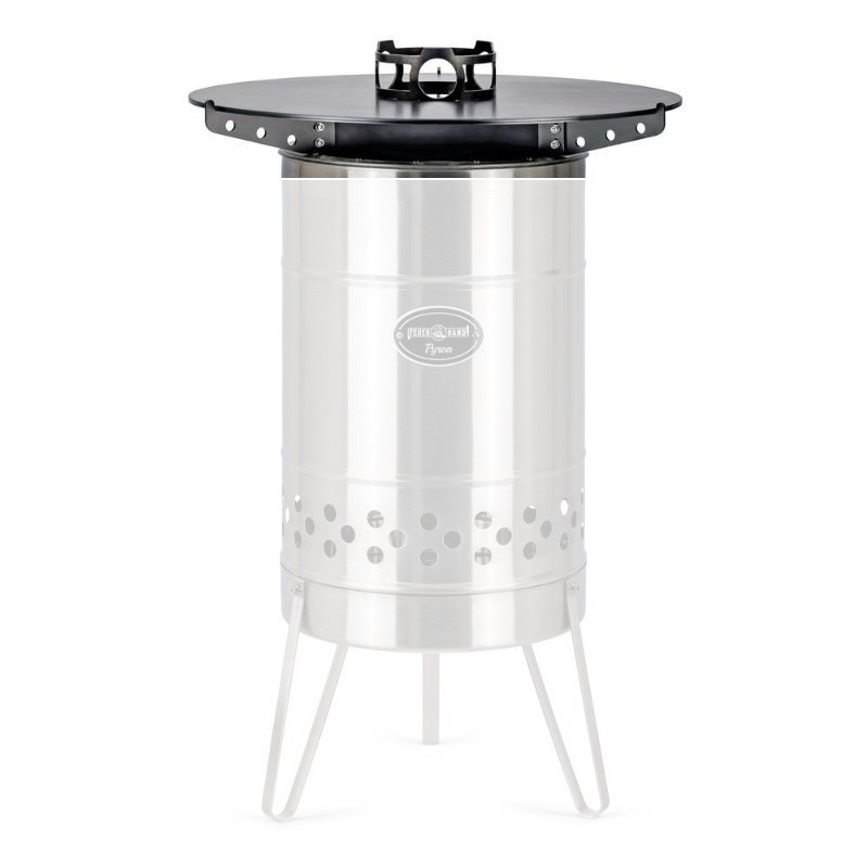 Grilovacia doska na nerezové ohnisko Pyron. Robustný plech s hrúbkou 6 mm slúži nielen na griľovanie, ale aj na varenie v hrnci či kanvici.