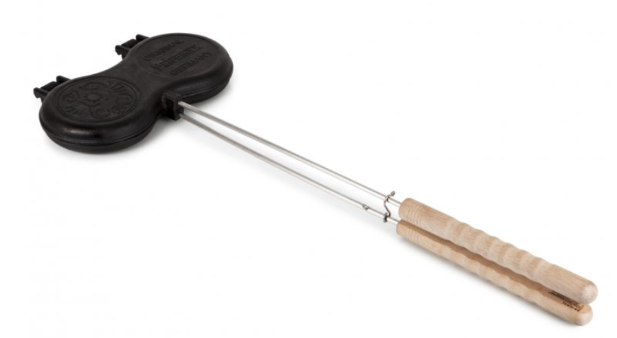 Liatinové formy na vafle,sendviče a hamburgery. Liatinové formy sú určené na varenie na ohni. Vďaka skvelým vlastnostiam liatiny umožňujú ako opekanie, tak využitie zvyškového tepla na dopekanie. Formy sú zaistené hákom, takže polovice drží bezpečne pohromade.