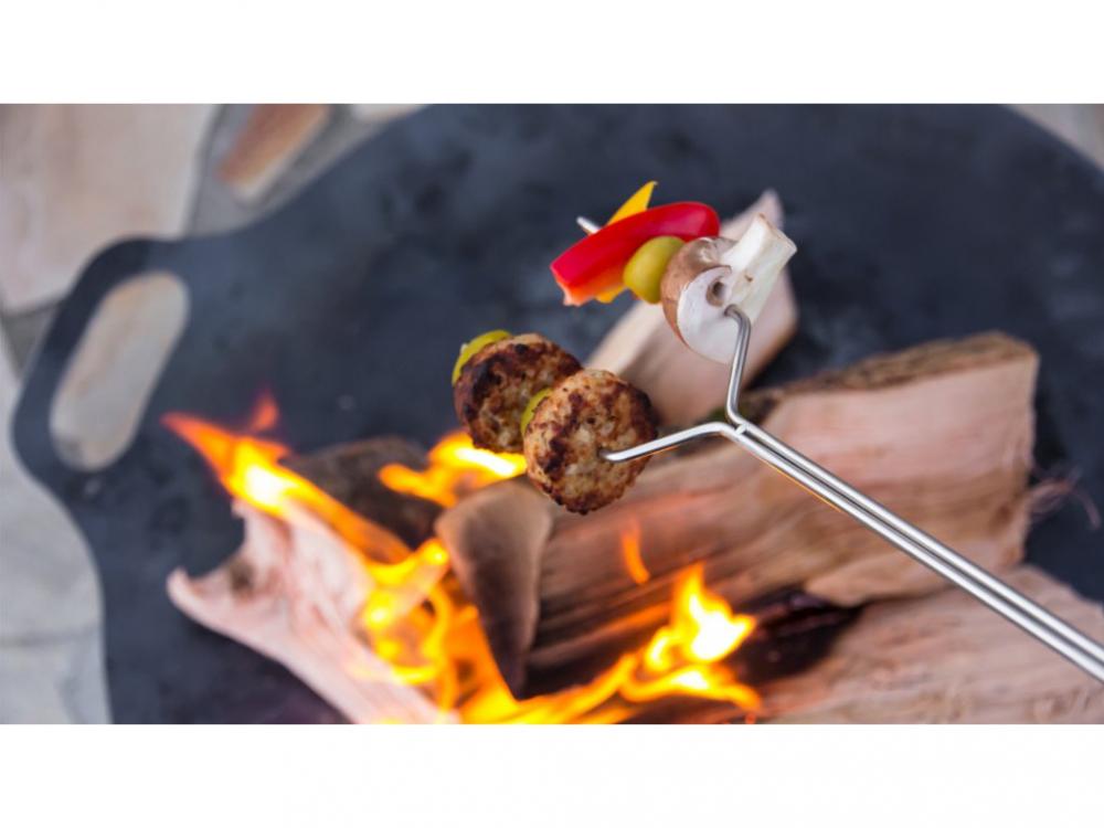Opekačky k táboráku. Opekačky z nerezovej ocele s drevenou rukoväťou umožňujú rýchle a ľahké opekanie špekáčikov, zeleniny a mnoho ďalšieho priamo nad ohňom alebo v grile. Vysúvacia tyč zaistí bezpečnú vzdialenosť od ohňa.