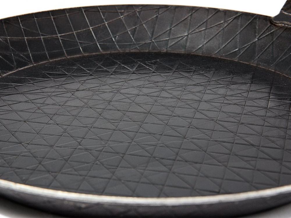Panvica z kovanej ocele na varenie na ohni, na grile, v krbe alebo v kozube. Odolná na niekoľko generácií. Ideálna na praženicu, grilovacie klobásky, zemiaky.
